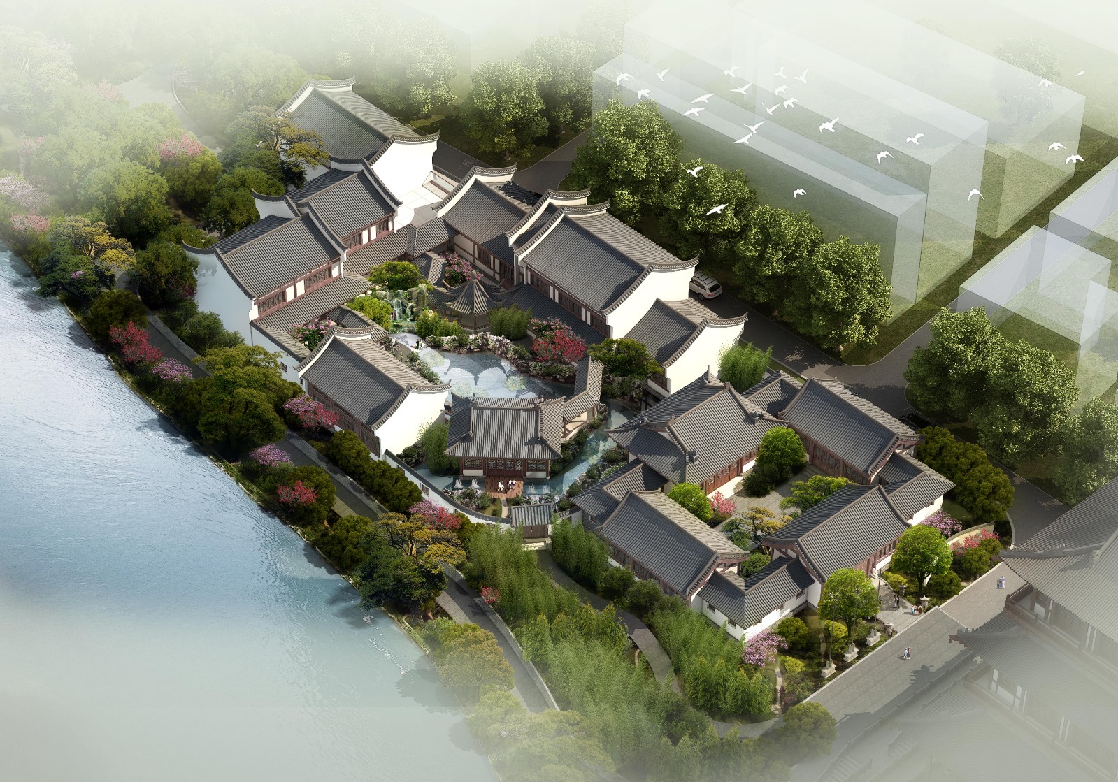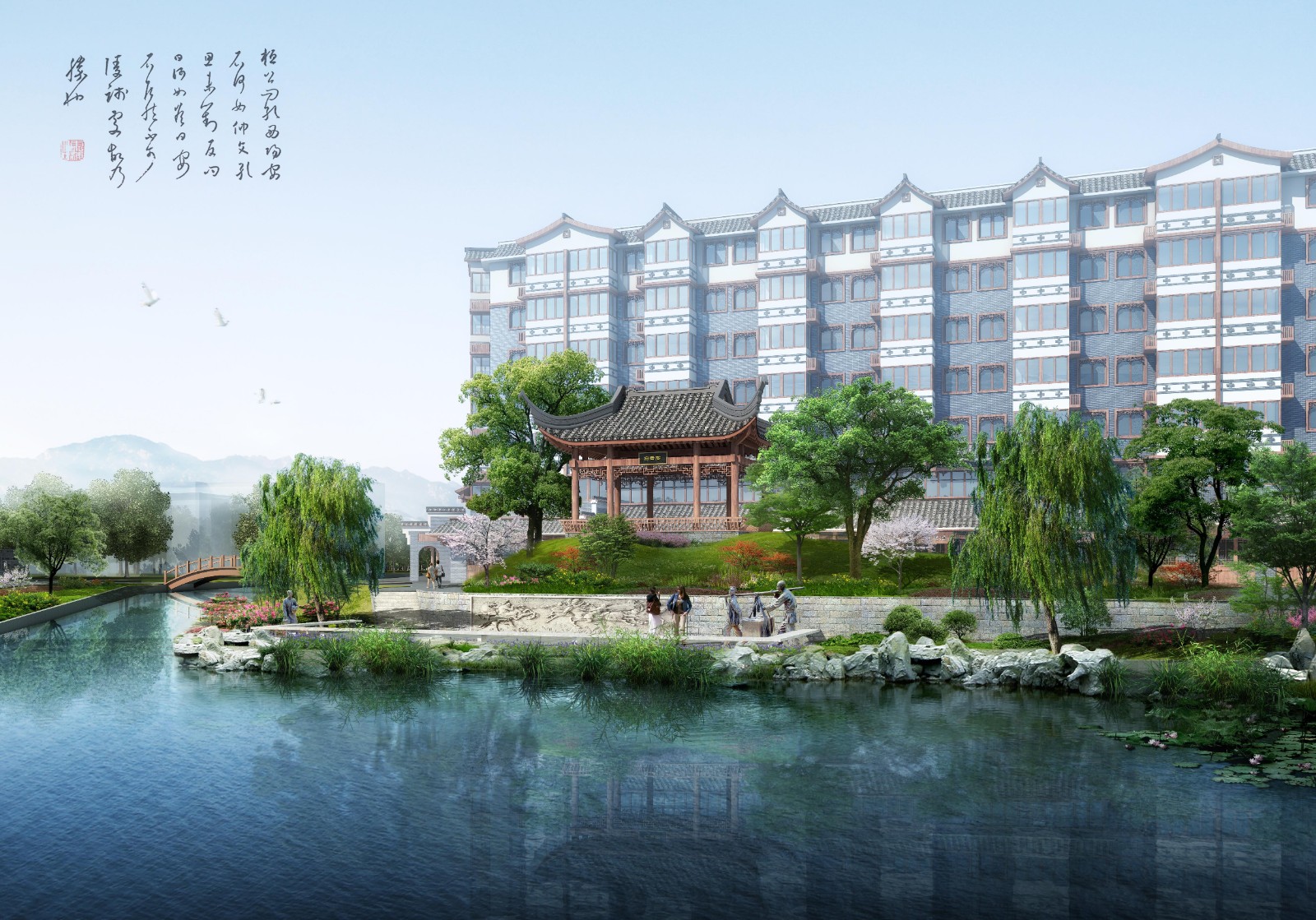 项目概况:项目总占地面积约18000㎡。本地块总平面规划布局,与秦时期的灵渠历史文化景观遥相呼应,在湘江东岸区域延续历时性的时空格局,沿轴线由北向南纵深规划设计明代早中期的魁星楼及文化景观广场,明代中后期的白云驿站,清代初期的白云驿馆,以及清代风格的白云阁及临江楼。规划设计拟复原明代风格的魁星楼,以及明清风格的白云驿、白云阁、临江楼,将兴安的人文历史景观建筑从秦始皇时代一直往后世推演,再现兴安历史较为完整的纵向维度。